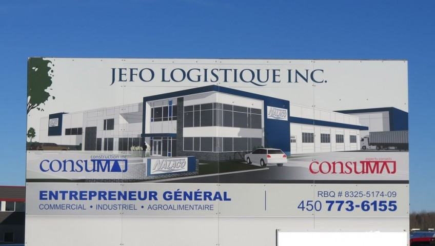 Les Bâtisseurs Daniel Cusson sont fiers d’annoncer la signature d’un important contrat commercial à St-Hyacinthe avec l’entrepreneur général Consumaj Construction, . En effet, nous participerons à la construction des nouvelles bâtisses de JEFO Logistique, sur la rue Pion à St-Hyacinthe, en tant que sous-traitant en menuiserie et en systèmes intérieurs. Le projet consiste à la construction d’un bureau/garage de 27 000 pi2 et d’un entrepôt de 75 000 pi2. Les travaux se dérouleront de novembre 2015 pour se terminer au printemps 2016.